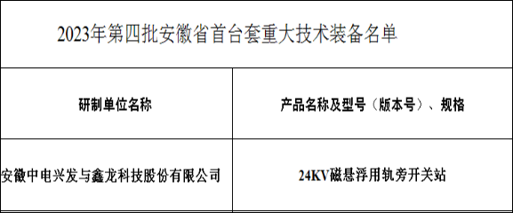 熱烈祝賀公司“24KV磁懸浮用軌旁開關(guān)站”榮獲安徽省首臺(tái)套重大技術(shù)裝備榮譽(yù)稱號(hào)