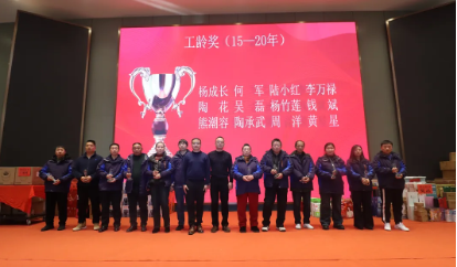 ? ? ? ? 隨后,頒發(fā)了“5-10年、10-15年、15-20年、20-25年、25年以上”工齡獎,公司非常珍視每一位員工的辛勤付出。此次年會,對那些與公司共同成長、風(fēng)雨同舟的員工們表示最崇高的敬意,是他們用青春和汗水澆灌了公司的發(fā)展,用智慧和努力支撐了公司的壯大。他們是公司最寶貴的財(cái)富,也是公司最堅(jiān)實(shí)的后盾。